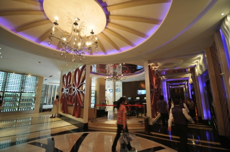 金碧辉皇是秦皇岛档次比较高的商务KTV,装修非常上档次,内部包厢配备都是国内顶级的,超强液晶显示器,智能点歌服务。提供豪华音响,巨大屏幕,绚丽多彩的舞蹈灯光。其次,服务非常到位,服务员都是经过专业的培训,各方面都合格才留下来的。微笑服务,竭诚奉献是每一位服务员的员工守则。而作为一家五星级水准夜总会,在价格方面,金碧辉皇只收取三星级的费用,酒水费用更是非常合理。